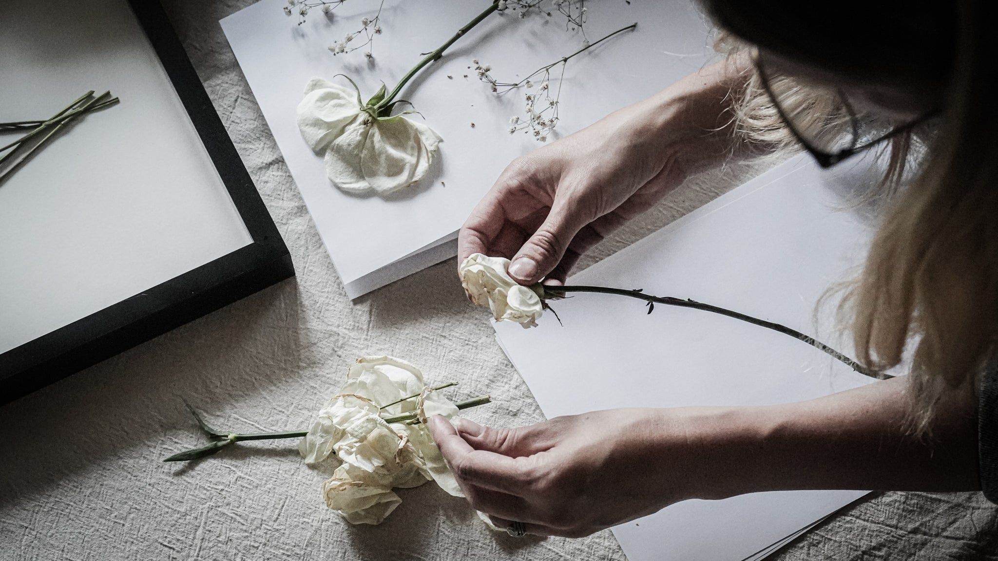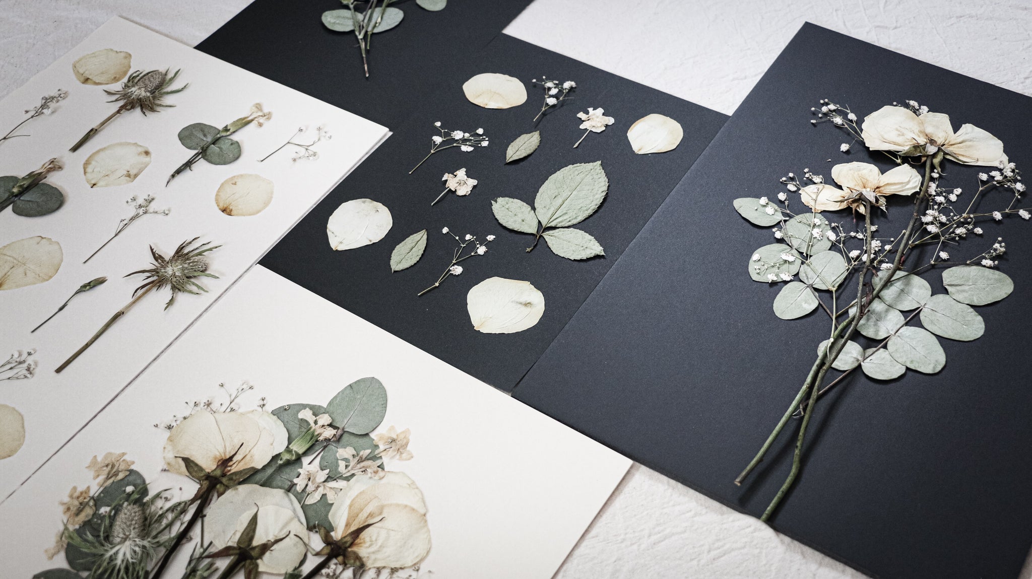 Each piece is designed with a modern, aesthetic, a curated composition of single or multi-stem pressed florals, selected from the most suitable elements of your bouquet.